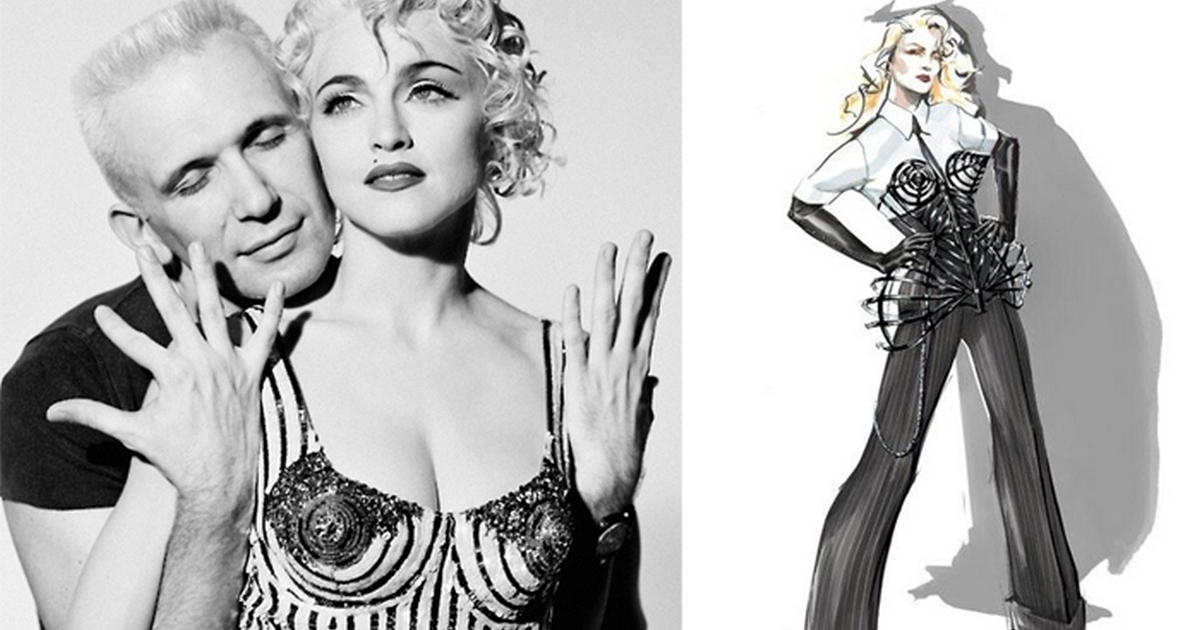 Певица Мадонна, королева эпатажа, не могла обойти вниманием скандального модельера и в 1990 году заказала у него костюмы для своего концертного тура, а он мечтал об этом с ее тура Like a Virgin. Главными героями всего тура стали шокирующий корсет с конусообразными чашечками и расклешенные брюки с очень неожиданными разрезами.