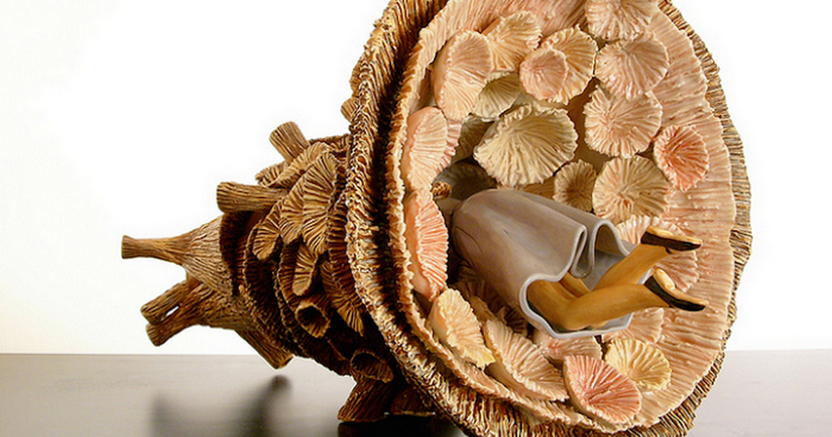 Американская художница создала серию причудливых керамических скульптур. Кажется, будто бы это Алиса из Страны Чудес. Но она не падает в кроличью нору, а ныряет в кораллы и морские раковины.