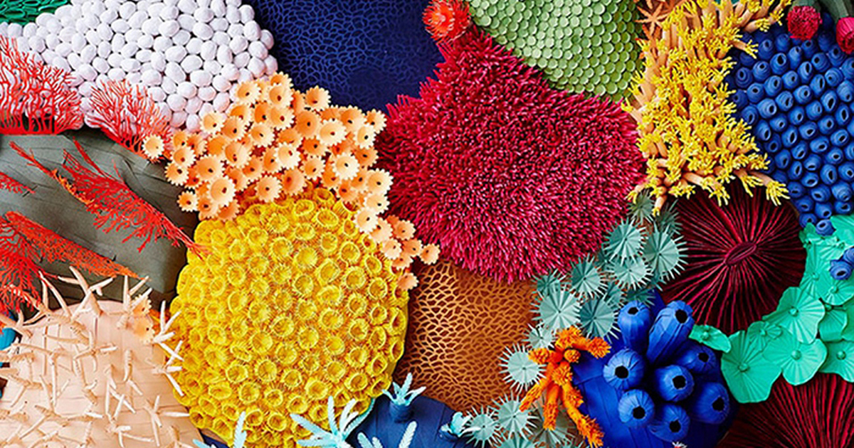 Французская художница Мадмуазель Иполлит (Mlle Hipolyte) создает объемные яркие скульптуры. Довольно непросто догадаться, что все эти сложные фигуры сделаны на самом деле из цветной бумаги. Выбирая такой материал, художница хотела показать хрупкость подводной жизни.