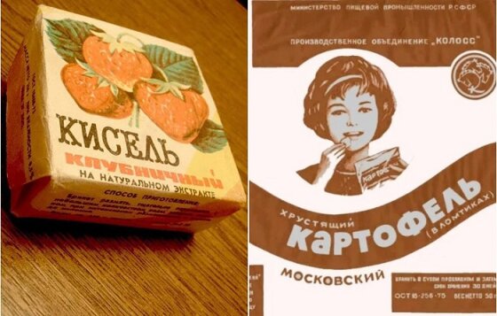 Еще один популярный полуфабрикат, который начали производить для армии, это кисели в брикетах. Такой напиток подавали в рабочих столовых, в школах и даже в детских садах. Люди делали и дома кисели, благо и делать особо ничего не надо было — раскрошить брикет на мелкие кусочки, залить водой и варить 20 минут. Все, вкусное блюдо готово. А дети обожали грызть брикетики сухого киселя. Он был действительно вкусным и стоил очень дешево. Натуральные кисели продаются и сегодня. В большинстве случаев состав хороший — высушенные фрукты и ягоды, сахар и крахмал. Бывает, что производители добавляют синтетические ароматизаторы. Надо внимательно просматривать этикетку перед покупкой.