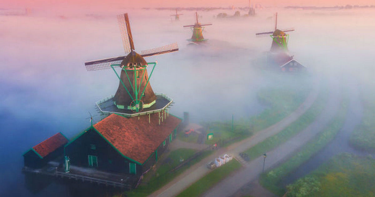 Фотографы любят снимать закат, и многие забывают о том, что по-настоящему интересные фотографии можно сделать, когда день только начинается. А если утром вы оказались в Нидерландах в музее под открытым небом Заансе Сханс, то берите поскорее в руки фотоаппарат и снимайте ветряные мельницы.
