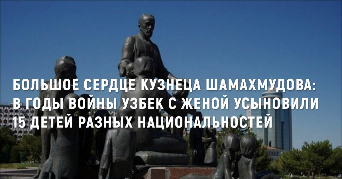 В Ташкенте есть удивительный памятник. В центре скульптурной композиции возвышается пожилой узбек, рядом сидит женщина, а окружают их многочисленные дети. Мужчина смотрит на них с нежностью и большой серьезностью – раскинув руки и словно обнимая все многочисленное семейство. Это Шаахмед Шамахмудов, которого почитает весь Узбекистан. В годы Великой Отечественной войны они с супругой усыновили и воспитали 15 (!) советских детей самых разных национальностей, став для них поистине родными мамой и папой.