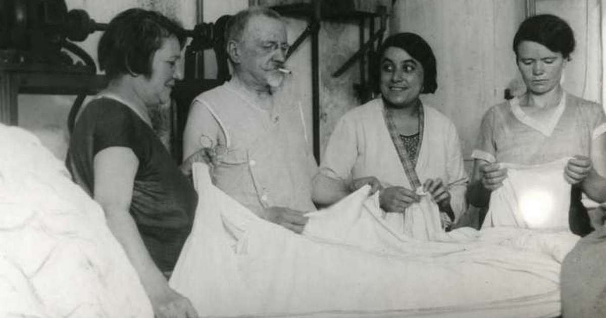 Генерал фон Фусс в эмиграции набивающий папиросы табаком. Берлин, Германия 1930 год.
