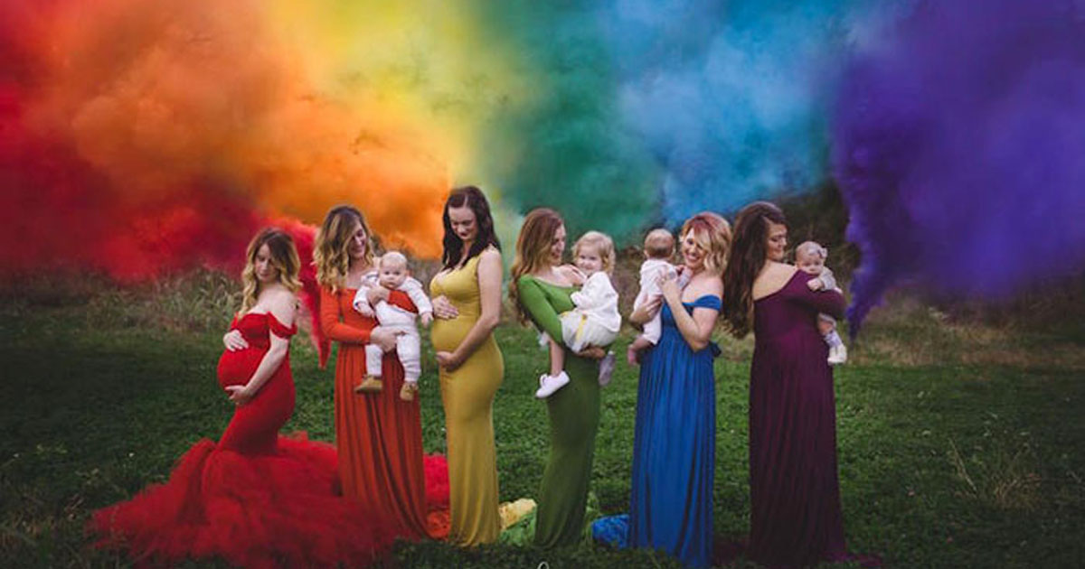 Совершенно сказочную фотосессию устроили шесть матерей, испытавшие на своем опыте что такое - потерять ребенка. С помощью дымовых бомбочек, шикарных платьев, каждое из которые отвечало своему цвету радуги, и немного магии от Photoshop'а, фотограф Алекс Болен постаралась передать то чувство волшебства, которое испытывают сейчас эти женщины, ожидающие ребенка.