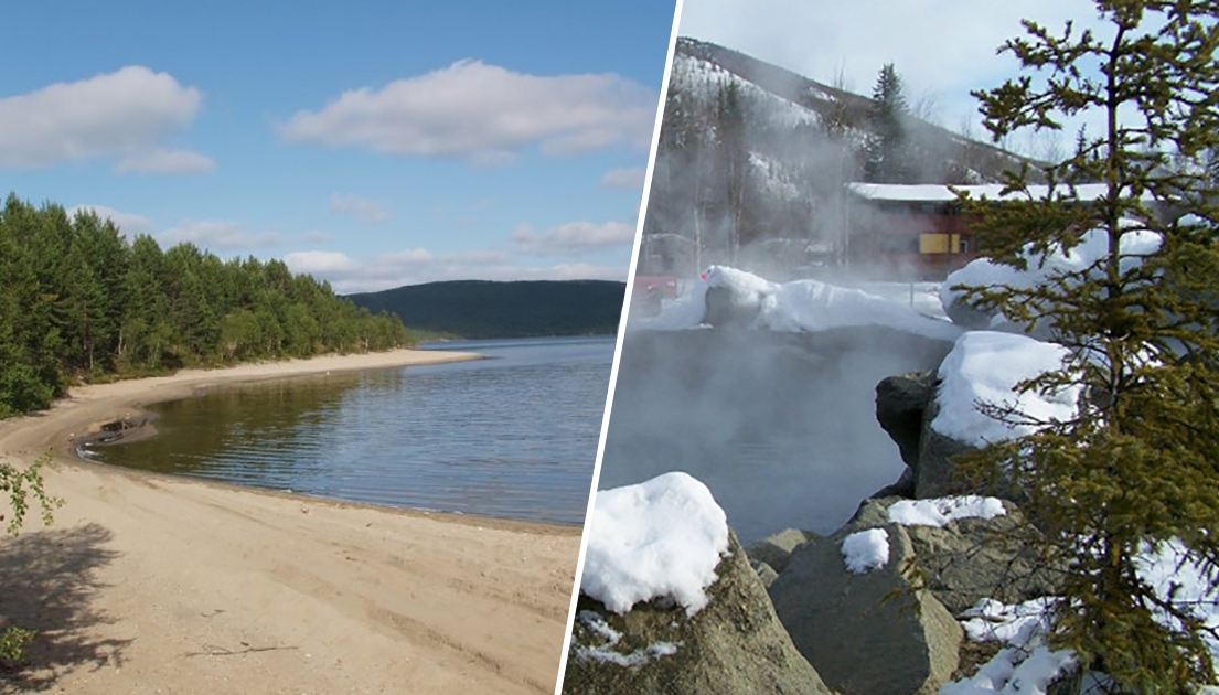 Поплескаться в море можно даже за Северным полярным кругом. Яркий тому пример — поселок Ура-Губа в России, где расположен полноценный пляж с чистым желтым песком и прозрачной голубой водой. Если бы не густой лес, раскинувшийся прямо за береговой линией, его легко было бы спутать с одним из курортов на Черном море (на фото).