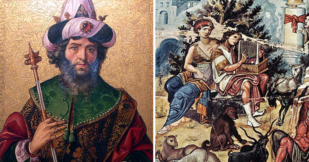 Самая известная миниатюра в серии с Давидом изображает царя, играющего на лире. Пейзаж напоминает мотивы позднеантичного искусства (скалы, деревья, городские строения). Вокруг Давида уже собрались зачарованные музыкой звери, его игру вдохновляет Мелодия, аллегорическая фигура которой изображена рядом с Давидом в свободной, естественной позе. Вокруг этой центральной группы находятся фигура Эхо (горная нимфа, «дочь скалистого утеса») и фигура мужского пола, символизирующая город Вифлеем. Композиция, вероятно, была основана на греко-римской живописи, на которой изображен Орфей, очаровывающий мир своей музыкой.