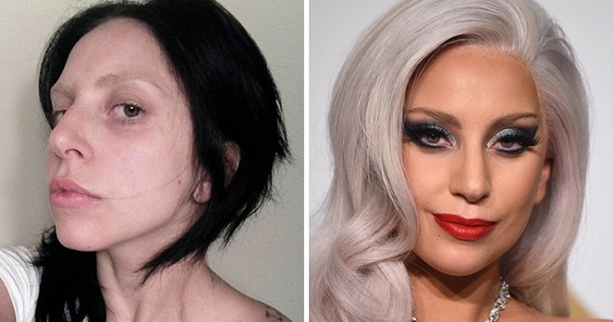 Кажется, что Леди Гага с макияжем и без - это две разные личности.
