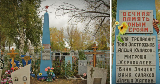 Весной, когда снег начал таять, местные жители бережно вытащили тела ребят из ямы и перезахоронили на местном кладбище. Через 24 года пионерам-героям установили скромный памятник.