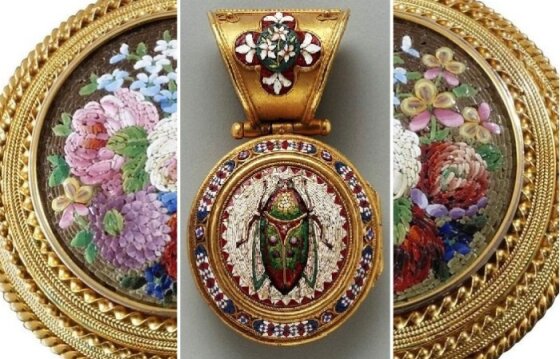 Одним из первых художников-мозаичистов, кто включил частицы микро мозаики в ювелирные изделия был Джакомо Раффаэлли (1753 -1836). Образцы его работ можно увидеть в Эрмитаже, в Ватикане, и в музее коллекций Гилберта в Лондоне.