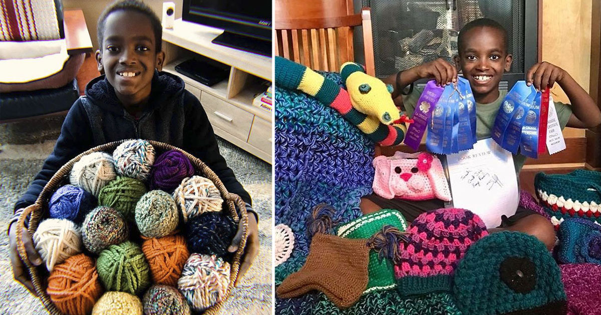 11-летний усыновлённый парнишка вяжет так, что бабушки позавидуют