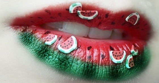 Ведь какой макияж вообще предусматривает тот факт, что губы могут превратиться в лимон, арбуз, апельсин, звездное небо в лунную ночь или вообще в россыпь драгоценных камней? Тем не менее, именно так представляет себе настоящую красоту испанская художница Ева Сенин Пернас!