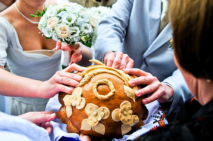 Машину украшали лентами, а впереди обязательно привязывали куклу. Потом был выкуп невесты. Особо популярным этот странный ритуал стал в эпоху застоя. После церемонии в ЗАГСе, свадебный кортеж обычно отправлялся по знаковым местам родного города. После этого, перед банкетом, нужно было разодрать каравай. Кто отхватит больший кусок — тот и будет главой семьи.
