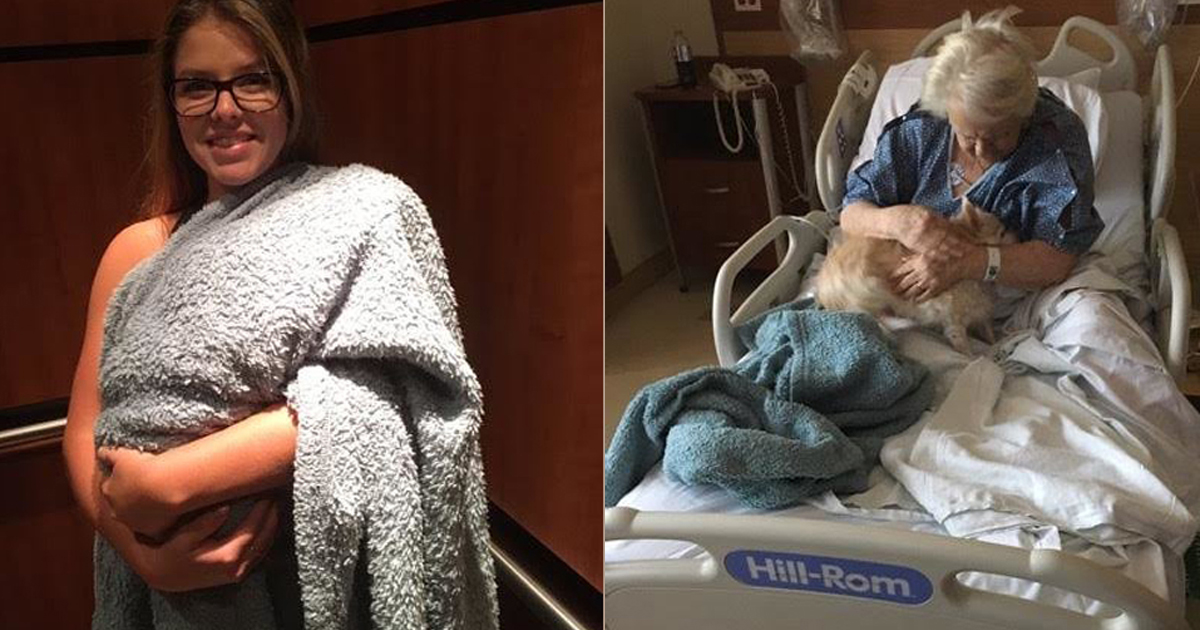 Маленькая пушистая Патси прожила всю свою жизнь с бабушкой Шелби, и вот уже 13 лет была ей верным другом. Девушка забрала собаку и поехала вместе с ней в больницу, размышляя по дороге, а можно ли вообще проносить животных в палату. Ответа она не знала, и потому решила не рисковать и притвориться, что вместо собаки у нее ребенок. Это была чистая импровизация, но она сработала!