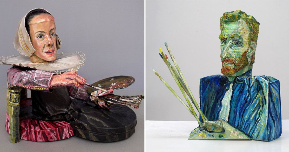 Реалистичные бюсты известных художников, созданные из консервных банок