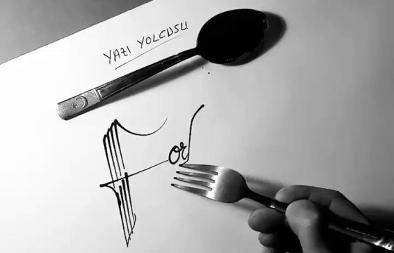 Яци Йолкусу использует обычные столовые приборы для создания великолепных образцов каллиграфии.