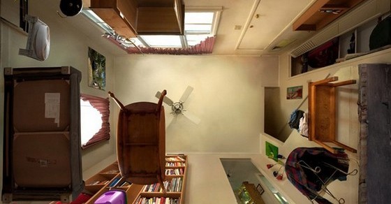 На сказать, что при создании фотографий из серии Below Майкл Роде не использовал никаких сложный фототехнологий типа «рыбьего глаза» и т.п. Он делал множество снимков под разными углами одного и того же помещения, отдельных предметов в нем, после чего «склеивал» все это при помощи компьютера в единое впечатляющее изображение.