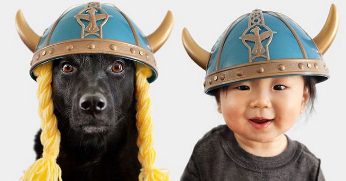 15 забавных фотографий малыша и его четвероногого друга в одинаковых головных уборах