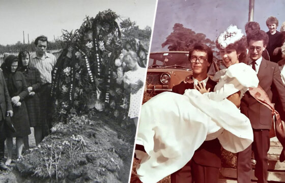 Ещё одна традиция, связанная с похоронами – это оркестр, играющий похоронный марш во время того, как несли гроб с покойником. Конечно, и сегодня с музыкой провожают в последний путь видных деятелей и военачальников, однако, кажется, только во времена СССР с оркестром хоронили самых обычных людей. Во дворах в какой-то момент раздавалась торжественная и печальная мелодия, а жители окрестных домов старались поплотнее закрыть окна, особенно в семьях, где были дети. Ибо, кажется, ничего не было более страшного, чем услышать те звуки, а после увидеть устланную цветами и пихтовыми ветками дорогу, по которой не так давно пронесли покойника.