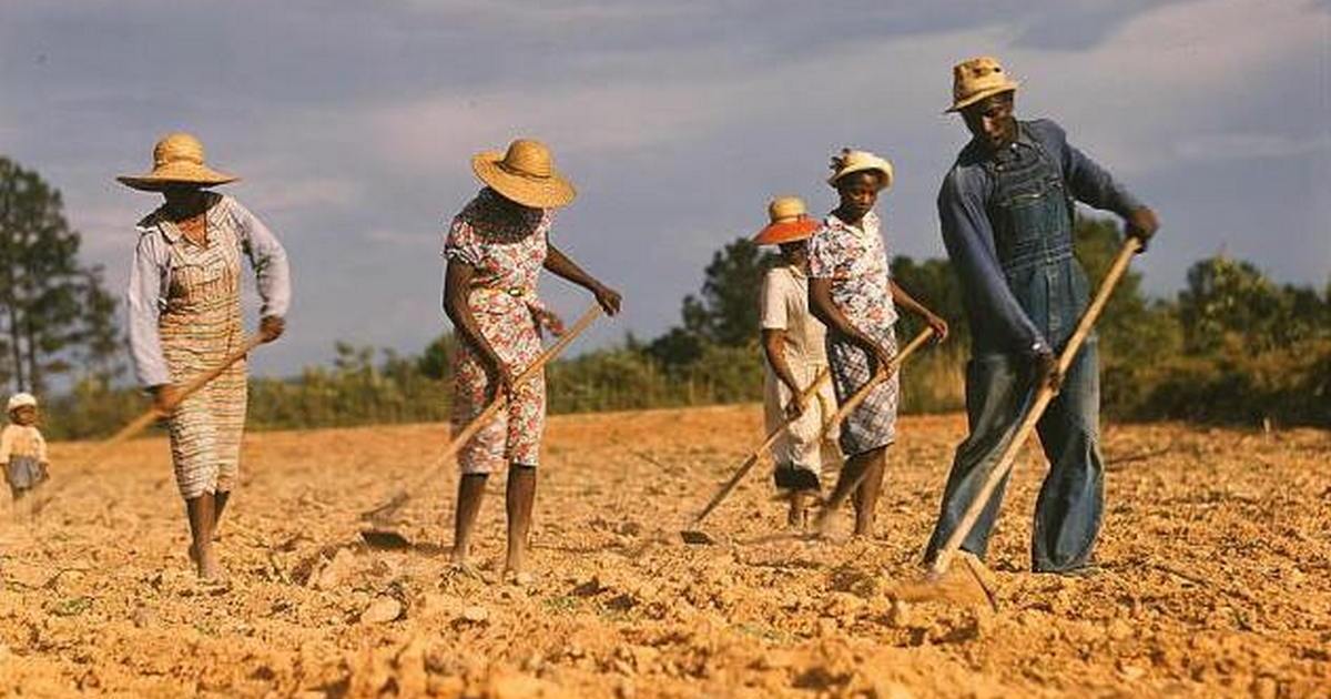 Люди, обрабатывающие арендованную у правительства землю недалеко от Уайт-Плейнс. США, штат Джорджия, июнь 1941 года. Автор: Jack Delano.