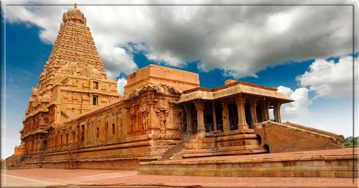Храм Брахадисвара ещё называют Великим храмом. Он находится в бывшей столице могущественной империи Чола, городе Танджавур. В те давние времена границы этого великого государства простирались вплоть до Юго-Восточной Азии. Для того чтобы утвердить своё могущество, Раджараджа Чола I приказал спроектировать и построить этот величественный храм невиданной доселе красоты. Его посвятили многоликому богу Шиве, одна из ипостасей которого исполняет космический танец Вселенной.