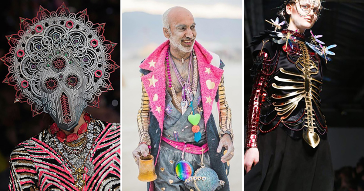 Шестеренки и светодиодные украшения сочетаются с вышивкой, шелком и каучуком, классические формы и сложные механизмы соседствуют друг с другом.