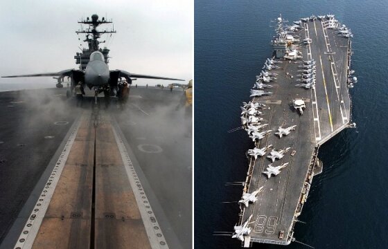 Американцы же активно строили авианосцы еще до начала Второй мировой. Островное государство может проецировать военную силу только по воде, поэтому и ставило на географически обоснованную силу – флот. Плавучие острова потенциально позволяли армии Штатов поддерживать и проводить сухопутные операции с моря. Но, надо понимать, что сам по себе авианосец – лишь вершина айсберга стоимостью примерно в 11 млрд долларов. Еще 5 млрд стоит авиагруппировка.