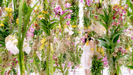 В эти дни в Токио проходит необычная выставка под названием Floating Flower Garden ("Парящий сад цветов"), которая представляет собой захватывающую интерактивную инсталляцию с живыми цветами. Посетители входят в комнату, полную парящих растений, но как только человек приближается, цветы... поднимаются в воздух.