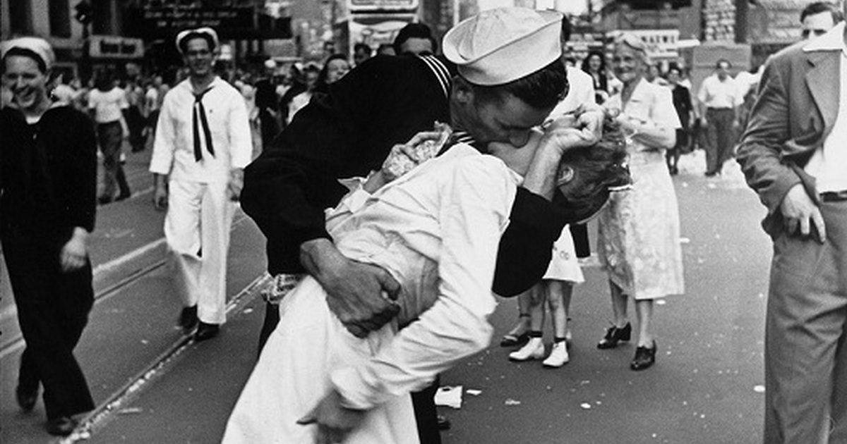Поцелуй в центре Нью-Йорка символизирующий окончание войны, 1945 год.