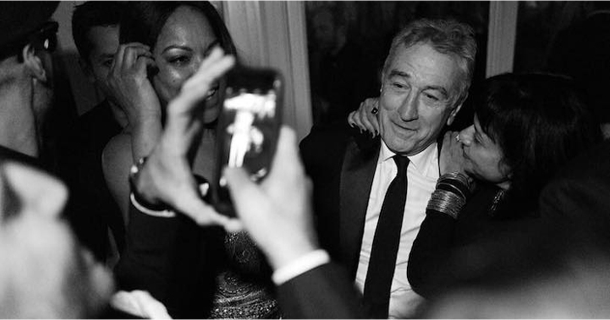 Эдраг Рамирес фотографирует Роберта Де Ниро (Robert De Niro) на премьере фильма *Каменные кулаки*.