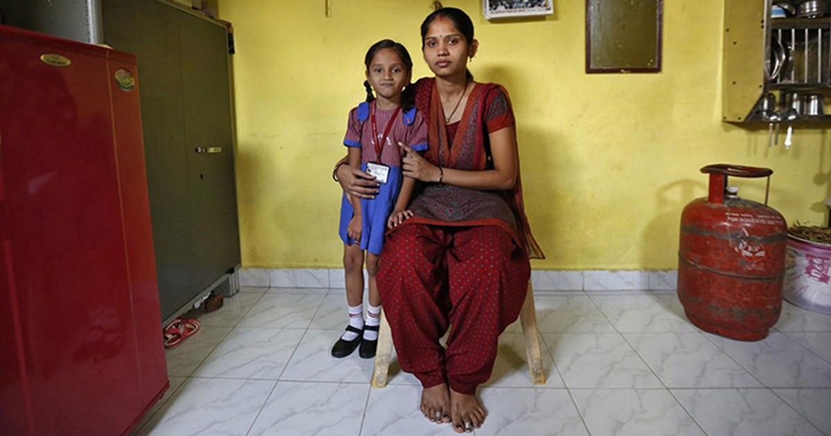 На снимке мама Сулочна Мохан Савант стоит со своей дочкой Шамикой Савант у себя дома. Сейчас маме 23 года, а ее дочке - пять. Когда Сулочна была маленькой, она хотела стать врачом, но в 14 лет ей пришлось оставить учебу, чтобы начать работать. Именно поэтому маме хотелось бы, чтобы ее дочь все-таки смогла получить образование и тогда, может быть, она станет учительницей. Шамика мечтает о том же.