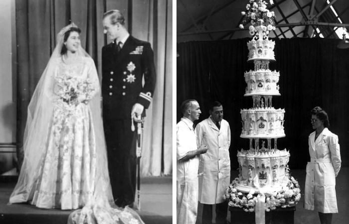 Свадебный торт королевы Елизаветы II и герцога Эдинбургского был высотой 9 футов и весил 500 фунтов, из него получилось две тысячи кусочков для гостей, и еще сотни кусочков были отправлены в различные благотворительные организации. Верхний ярус свадебного торта сохранили для крестин их первенца, принца Чарльза, которые состоялись через год после их свадьбы.