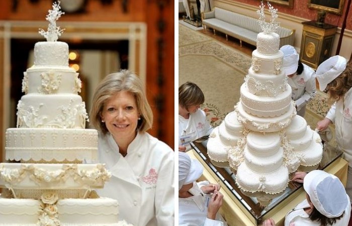 Для свадьбы принца Уильяма и Кэтрин Миддлтон торт изготавливала шеф-повар королевского двора Фиона Кэрнс, которая создала около тысячи нежных оттенков сахарной пасты, чтобы украсить фруктовый свадебный торт, на подготовку которого у нее ушло пять недель.
