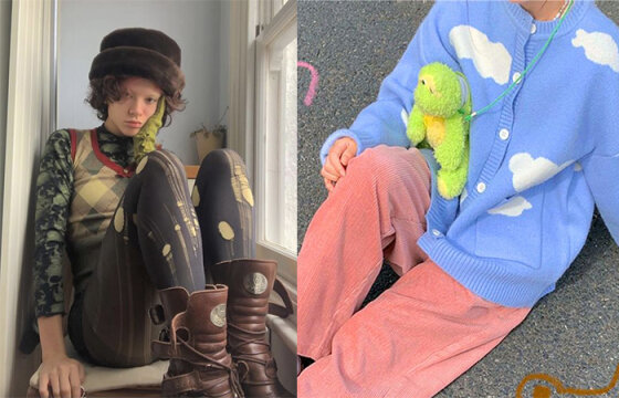 Но если все же становиться взрослым пока не хочется, зато пора бы закрыть гештальт и купить наконец-то все нелепые брелки на свете – на помощь придет эстетика кидкора. Это яркая, утрированно детская одежда, напоминающая стиль детишек из американского кино девяностых – лонгсливы в радужную полоску, джинсовые комбинезоны, расклешенные юбки, цветные сандалии на не менее цветные носочки, наивные принты и паттерны – солнышки, облачка, милые зверюшки, образы из мультфильмов и аниме.