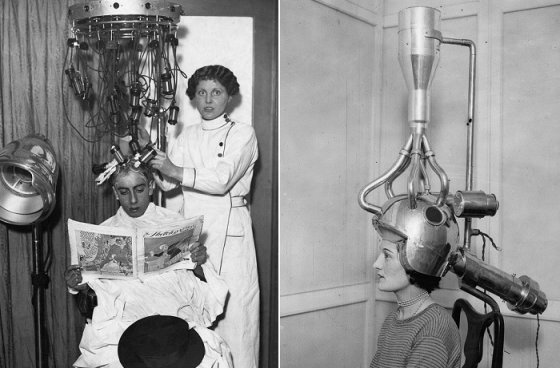 На все согласны ради красоты: ретро-снимки первых сушилок для волос, больше напоминающих орудия пыток