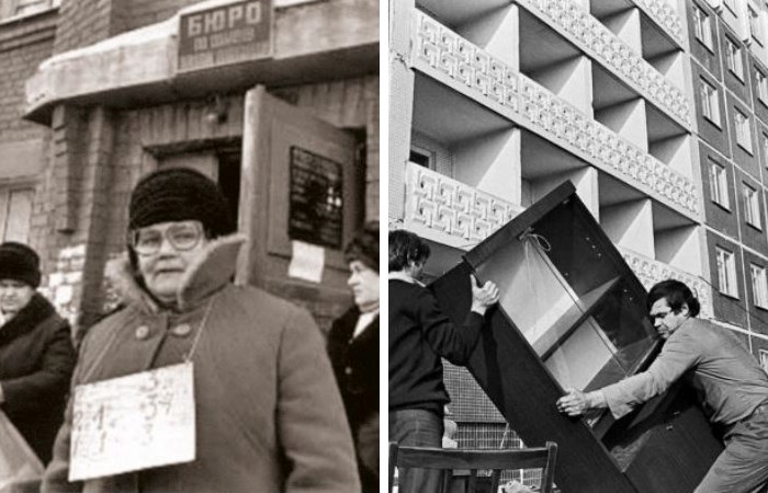 В Советском Союзе многоквартирные дома находились преимущественно в государственной собственности, и хотя правительство стремилось обеспечить каждого гражданина жильем, реальность была сложнее. Очереди на получение квартиры приходилось ждать много лет, а улучшить жилищные условия при изменении состава семьи было практически невозможно. В условиях отсутствия возможности приобретения и продажи квартир людям приходилось изобретать хитроумные схемы, позволяющие обходить законы.