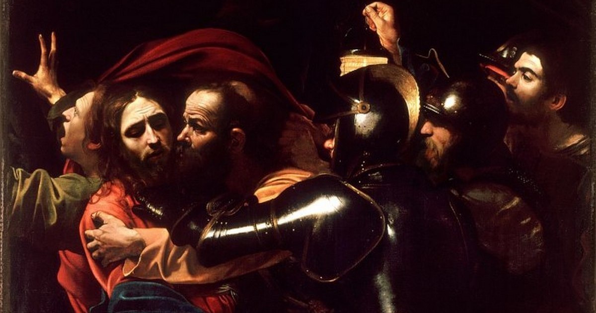Здесь изображен арест Христа. Помимо Иисуса, другие присутствующие фигуры включают Иоанна, трёх солдат, Иуду, а также человека с фонарём в руке. Фигуры были помещены на тёмном фоне с единственным источником света, являющимся фонарём. Помимо светотеневой расстановки освещения, жизнеподобное представление фигур, драматическое представление и духовное измерение выводят его на совершенно иной уровень, делая картину невероятно проникновенной и реалистичной.