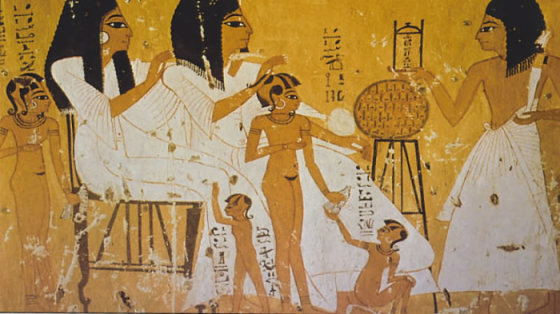 Перед родами женщина Древнего Египта брила волосы на всем своем теле – даже на голове. Помощницы, которых в наше время назвали бы акушерками, поддерживали будущую мать на протяжении всего процесса родов. Некоторые из них действительно обладали определенными навыками в области родовспоможения, поскольку в Саисе существовало специальное учебное заведение, в котором готовили таких акушерок.