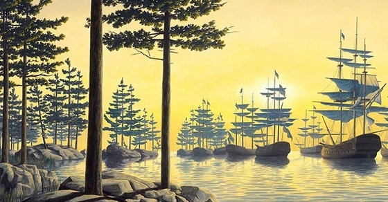 Оптическая иллюзия – излюбленный прием в творчестве канадского художника. Его незамысловатые, и в то же время фантастические картины можно подолгу рассматривать, отыскивая границы между сюжетами.
