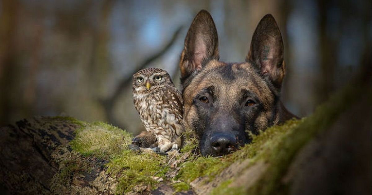 Приятельские отношения совы Польди и милой овчарки Инго заинтересовали фотографа