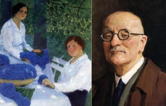 Портрет художника Игоря Грабаря и его картина *Васильки*.