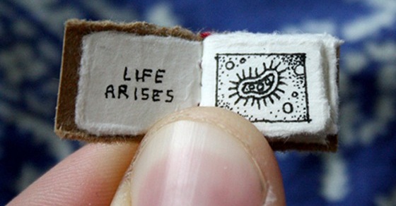 Попытка сжать рассказ о развития жизни на Земле – задача особенно сложная, если писать приходится на страничках, размером с ноготь. Воплотить в жизнь эту безумную идею удалась талантливому иллюстратору Evan Lorenzen, который выделил несколько ключевых моментов в истории нашей планеты и поместил их на страницы своей миниатюрной книги под названием “Мини-книга о главных событиях” (“The Mini Book of Major Events”).