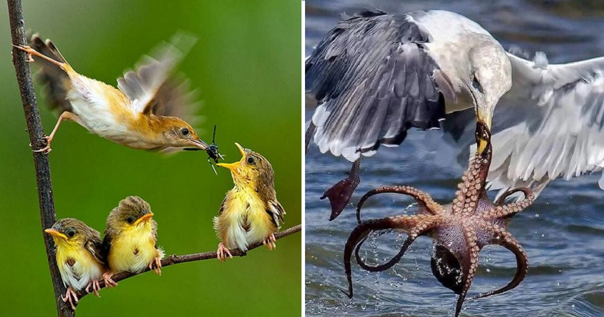 Фотографировать птиц нелегко, а поймать в кадр такие интересные моменты, как запечатлены на фото этого обзора - и вовсе фантастика. Фотографам удалось снять птиц в тот самый момент, когда они решили подкрепиться - кто-то мушками, кто-то ягодами, а кто-то рыбкой. Каждая фотография - интереснейшее яркое событие.
