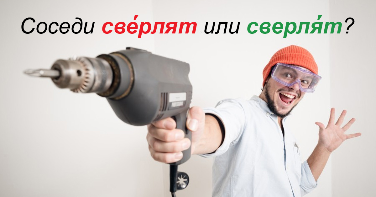 Тема соседского ремонта и звуков перфоратора ранним субботним утром актуальна для многих. Можно стучать возмущенно палкой по батарее. Иногда помогает. Но вот говорить при этом: «Опять они свЕрлят» – нежелательно. Ведь неопределенная форма у этого глагола – «сверлИть». А значит, соседи – сверлЯт.