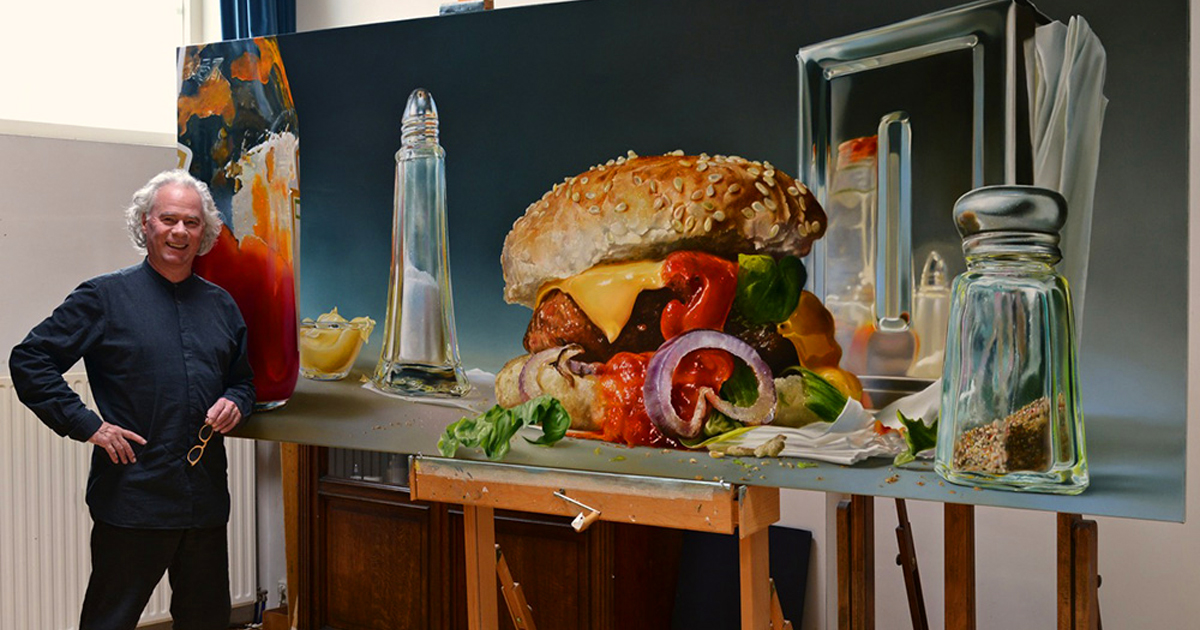 С картинами Чалфа Спарнаая на стене у себя дома трудно будет придерживаться диеты - если только эта картина не с салатом. Потому что нарисованные бургеры и жареная картошка у этого художника получаются такими реалистичными, что хочешь-не хочешь, а аппетит дает о себе знать.
