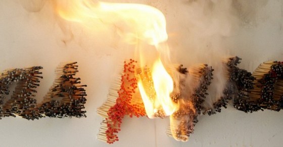 Очередное произведение искусства, в котором используются спички, создал французский художник ливанского происхождения по имени Али Шерри. Необычная работа с названием Le Pyromane посвящена политическому протесту, а именно, самосожжению.