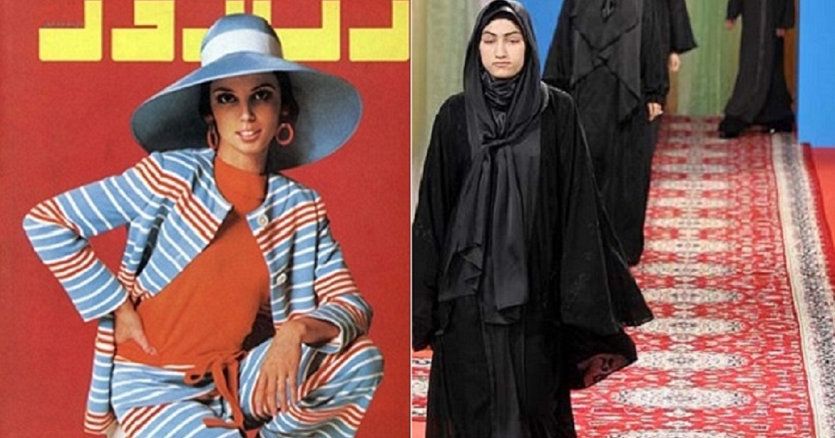 В 1970-х годах иранские женщины получили право на развод. Тогда же девушки носили короткие юбки, блузки с глубоким декольте, открытые купальники. Они с удовольствием принимали участие в конкурсах красоты. Глядя на обложки модных журналов того времени, сложно представить, что это раскрепощенные мусульманские женщины, ведь к концу 1970-х ситуация изменилась кардинально.