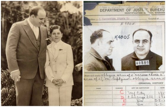 Слева направо: Аль Капоне и его сын Альберт Фрэнсис Сонни Капоне. \ Портрет Аль Капоне в 1925 году.