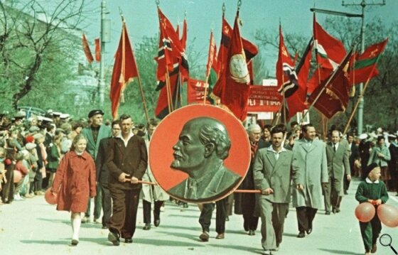 В мае советские люди отмечали Первомай, или День международной солидарности трудящихся. И вот, демонстрируя эту самую солидарность с трудовым народом всего мира, люди выходили на демонстрацию и шествовали мимо трибун, на которых располагались официальные лица, в основном обкомовское и райкомовское руководство. Воздушные шары, плакаты, флаги, искусственные цветы, смех, веселье и музыка - это был Первомай. Несмотря на политическую подоплеку, праздник очень нравился советским людям. Это была возможность собраться, расслабиться, прогуляться по улице, попеть песни, пусть патриотические (а иногда и не очень), почувствовать весну и единение.