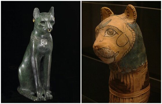 Слева направо: Кошка Гайер-Андерсона, 664-332 гг. до н.э. \ Божество с кошачьей головой Бастет.