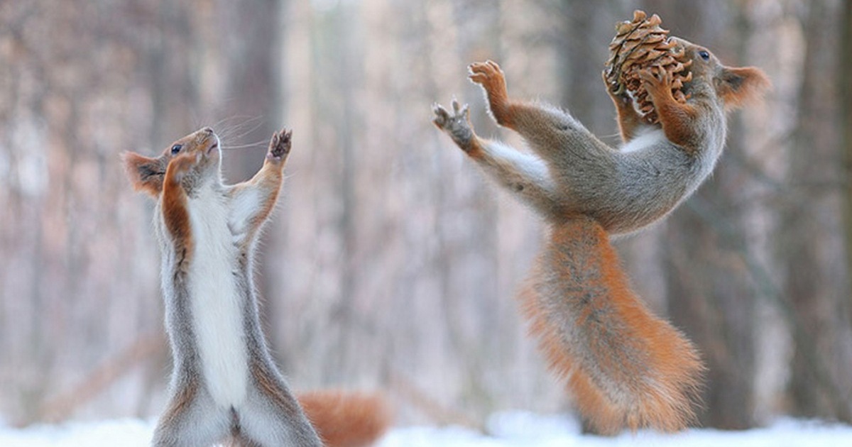 Зимнее кунг-фу от белок: забавные фотографии двух зверьков из русского леса